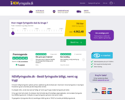 Bestil fyringsolie hos NEMfyringsolie.dk i dag - Det er BILLIGT, NEMT og TRYGT. Vi er e-mærket og leverer frostsikret ❆ fyringsolie inden for 4 hverdage.
